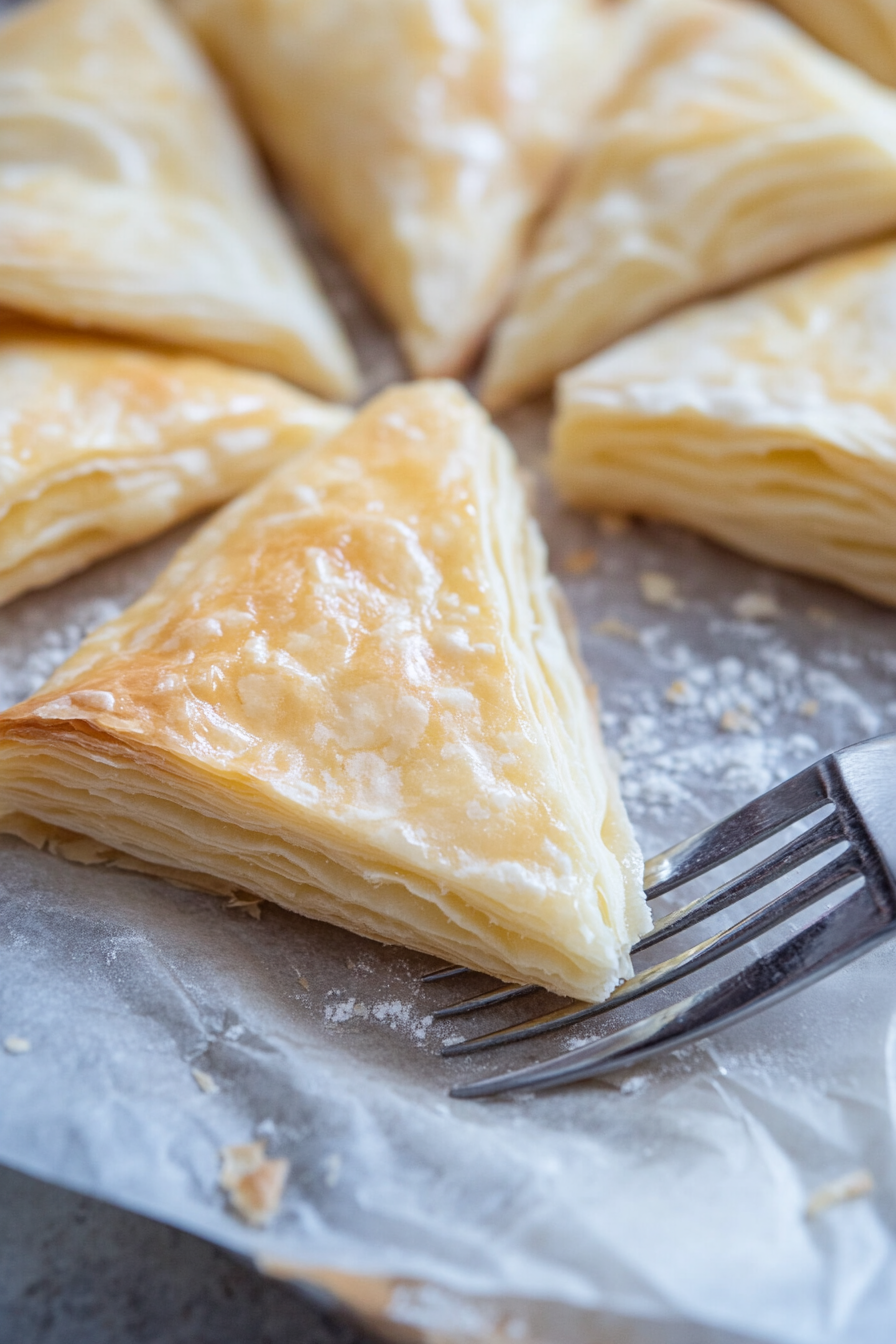 Fold and Seal Bourekas: Fold the square into a triangle, pinching the edges to seal. Optionally crimp with a fork.