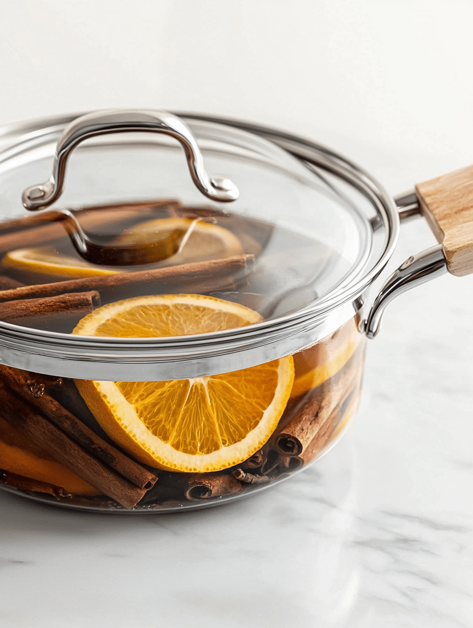 Pour the fragrant mixture into a decorative bowl or leave it on the stove to continue emitting scent as long as you wish.
