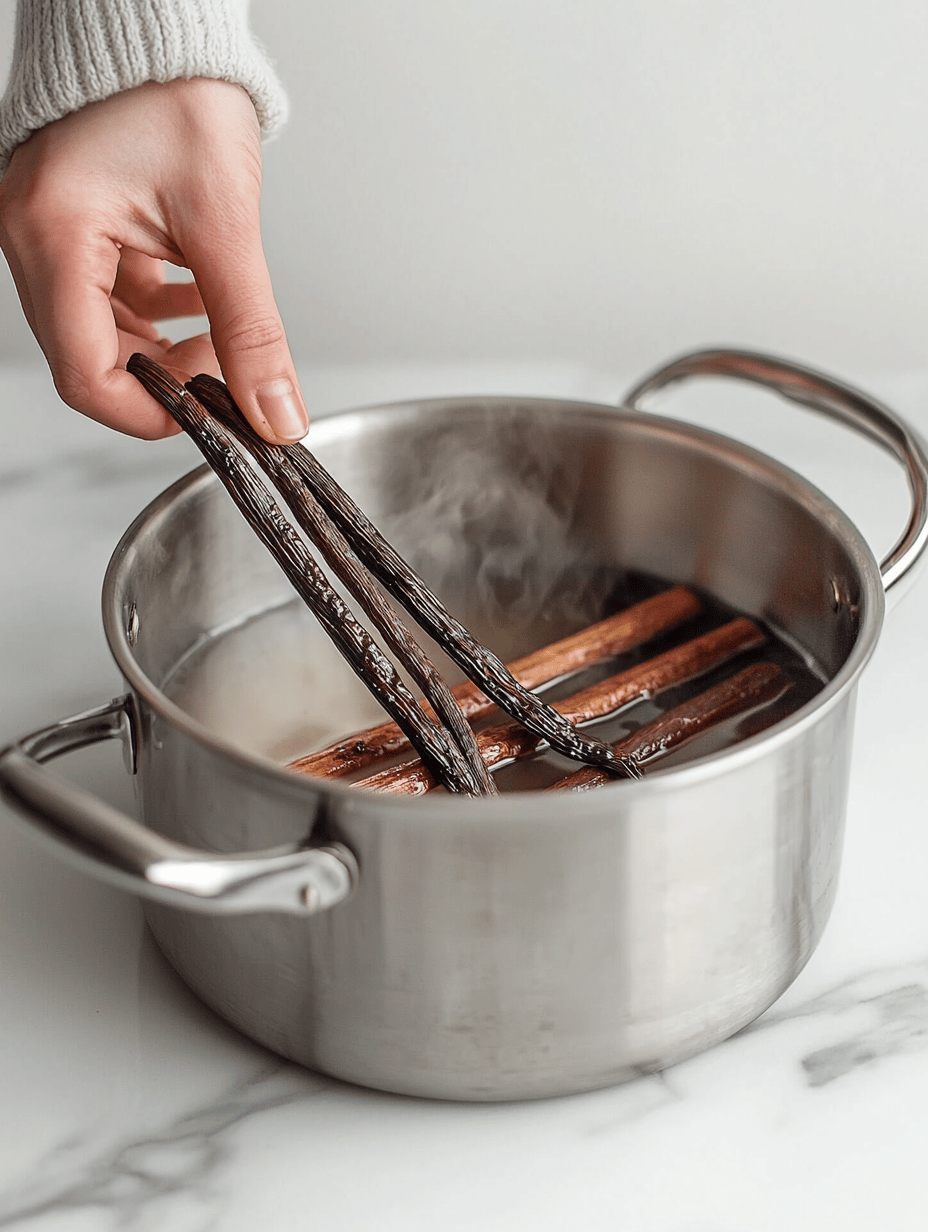 Once your home is filled with a cozy vanilla cinnamon aroma, turn off the heat and carefully remove the cinnamon sticks.