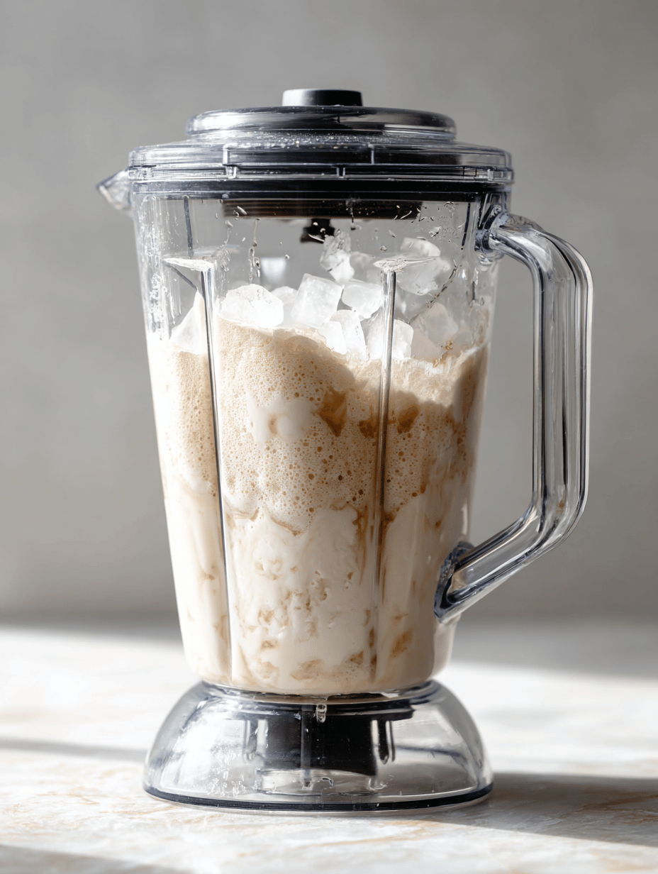 Check the consistency; it should hold a peak when you lift the blender’s lid. If too runny, add more ice and pulse briefly.