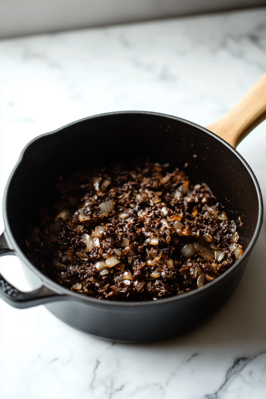 Deglaze the pan with sherry, scraping up any browned bits from the bottom.