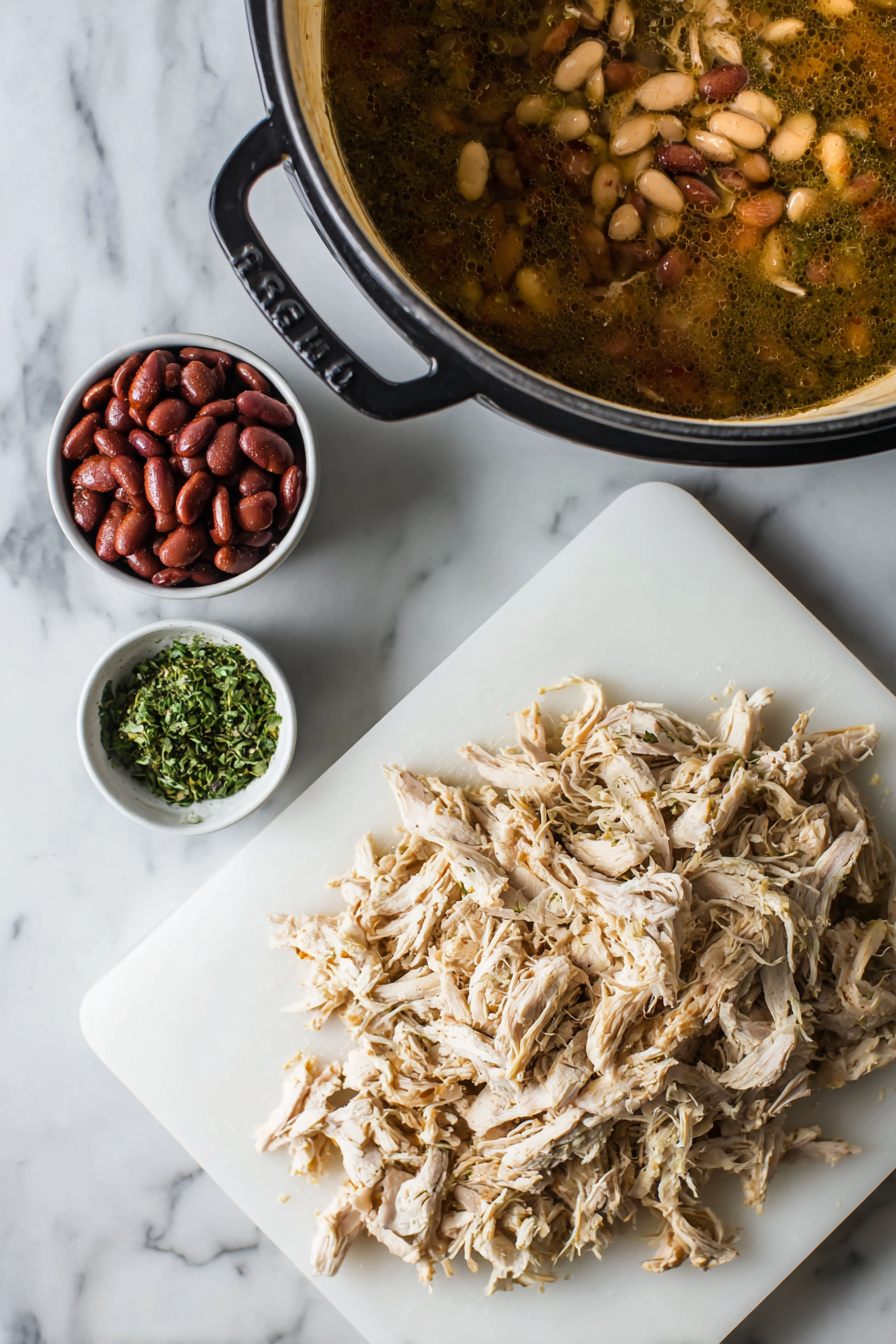 Remove chicken, shred it, then return it to the pot.