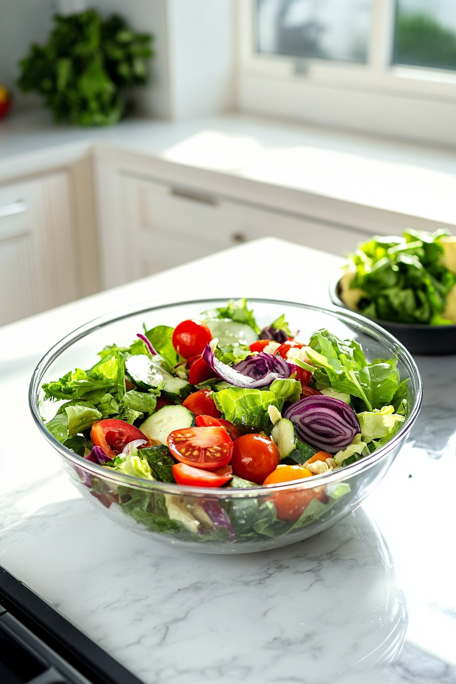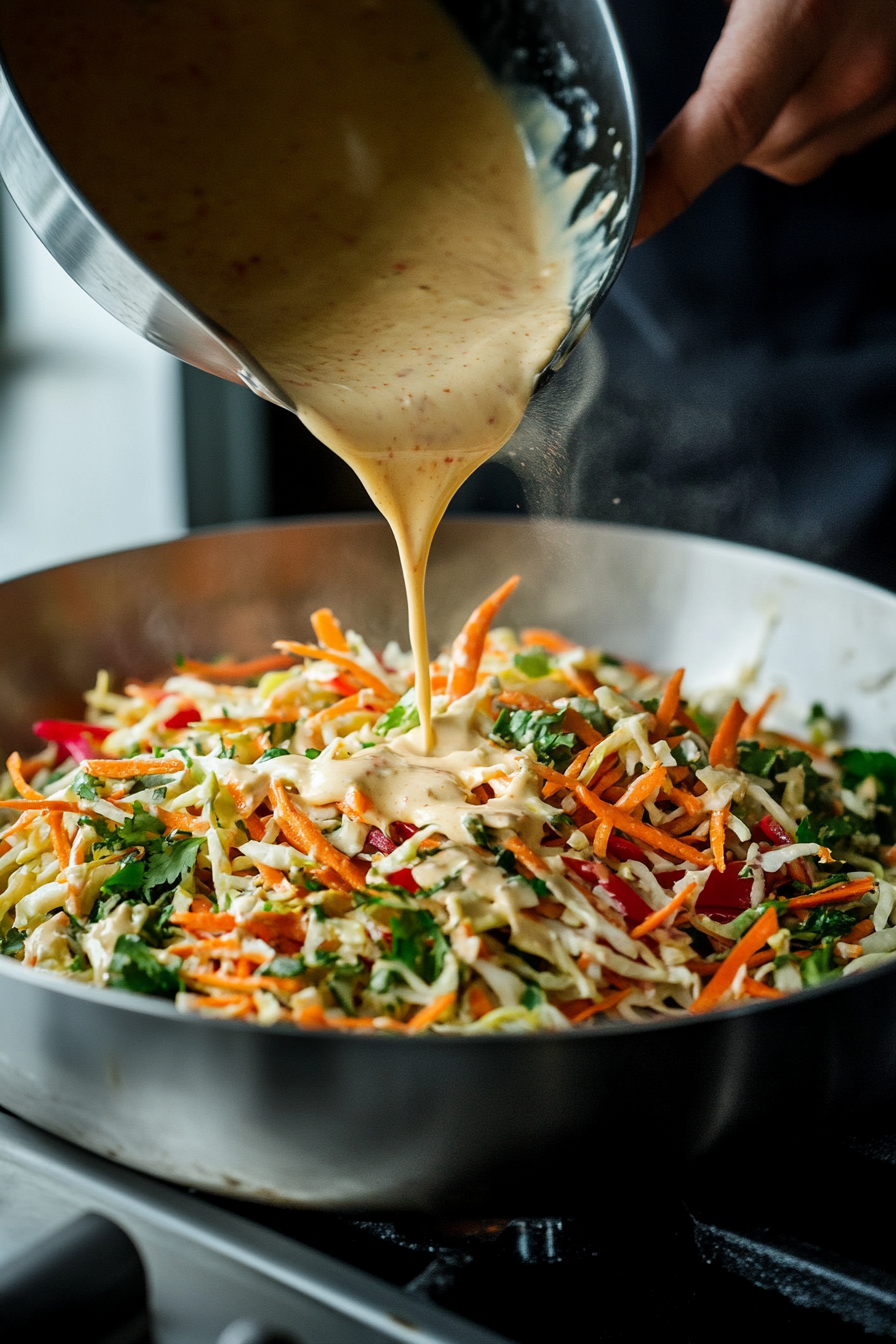 Toss everything together until the salad is well-coated, using a generous amount of dressing like a coleslaw.